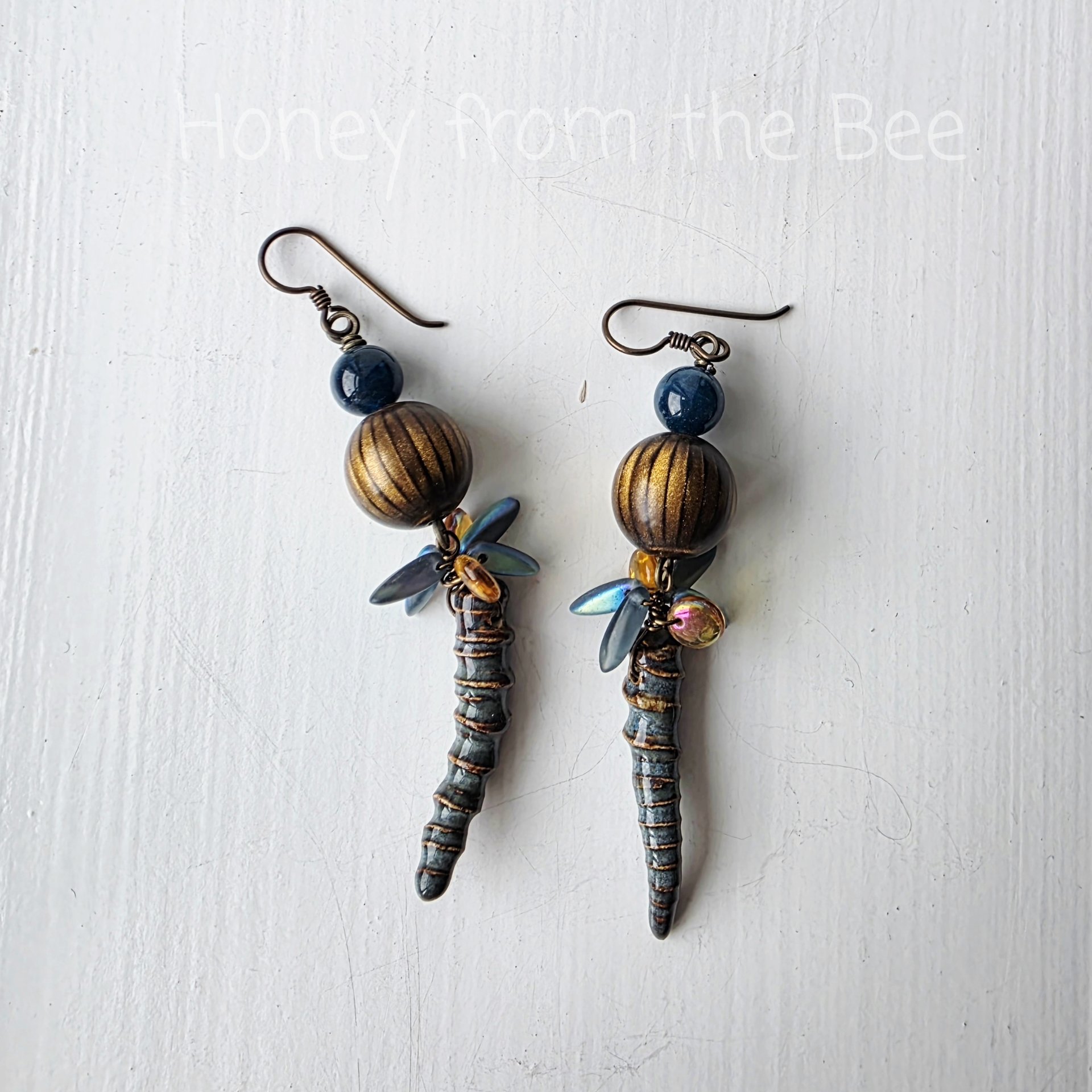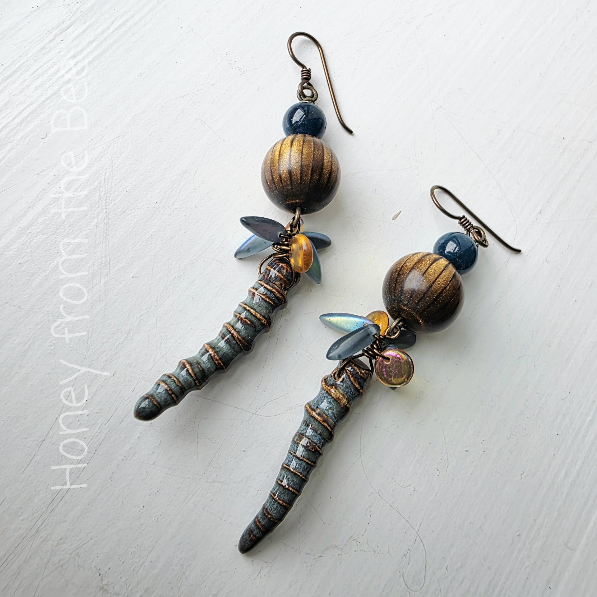 The small blue flashing glass beads remind me of how schools of fish flash as they move together in unison. My husband, a fisherman, often pulls out this sage advice for picking partners and friends, finding good doctors as well as good trades people: start with someone you know to be top notch and go with their recommendations and people they surround themselves with. Good advice, eh?
