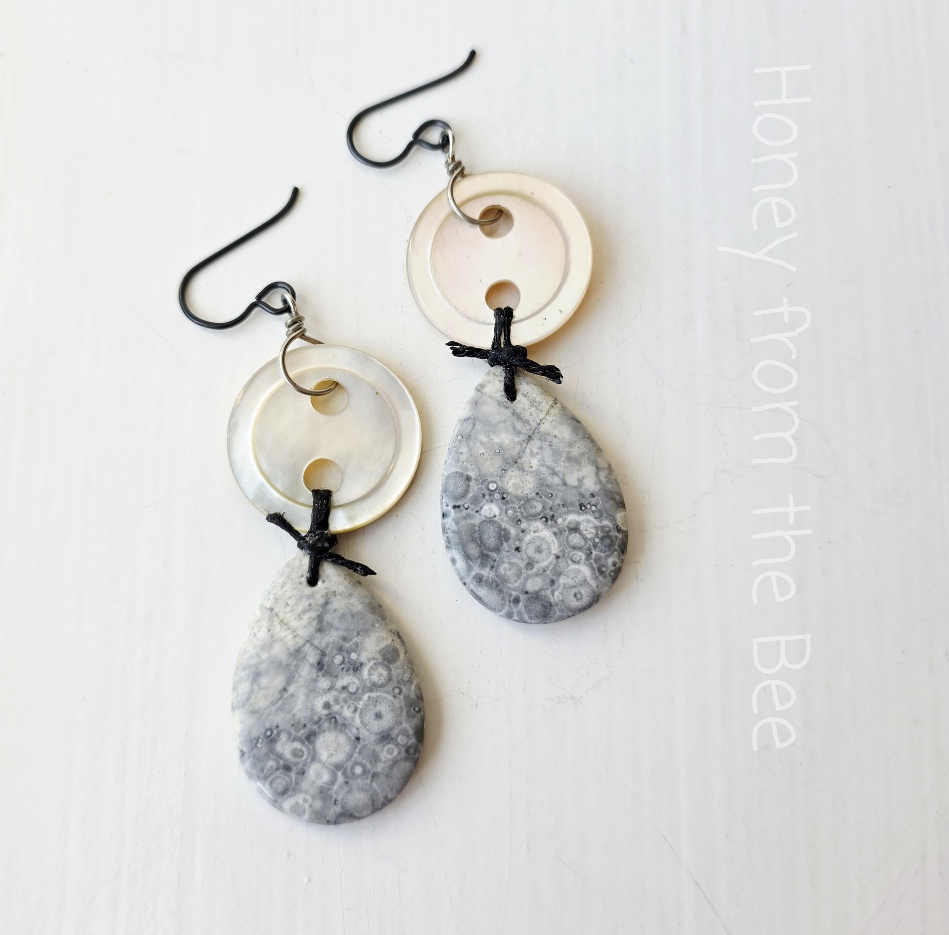 Mother of Pearl and Orbicular Rhyolite repeat the circle motif.